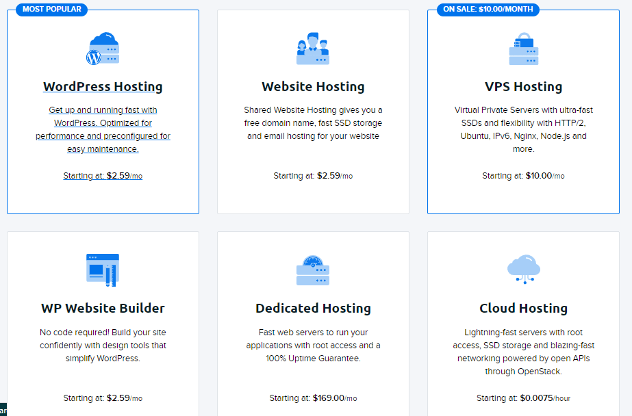 Dreamhost offers a range of hosting plans that are suitable for all users, including beginners, small company owners, and operators of e-commerce websites. They provide managed WordPress hosting, VPS hosting, dedicated server hosting, cloud hosting, and shared hosting. They are a very reputable hosting business with in-house technologies that can keep your website safe from viruses and malware.